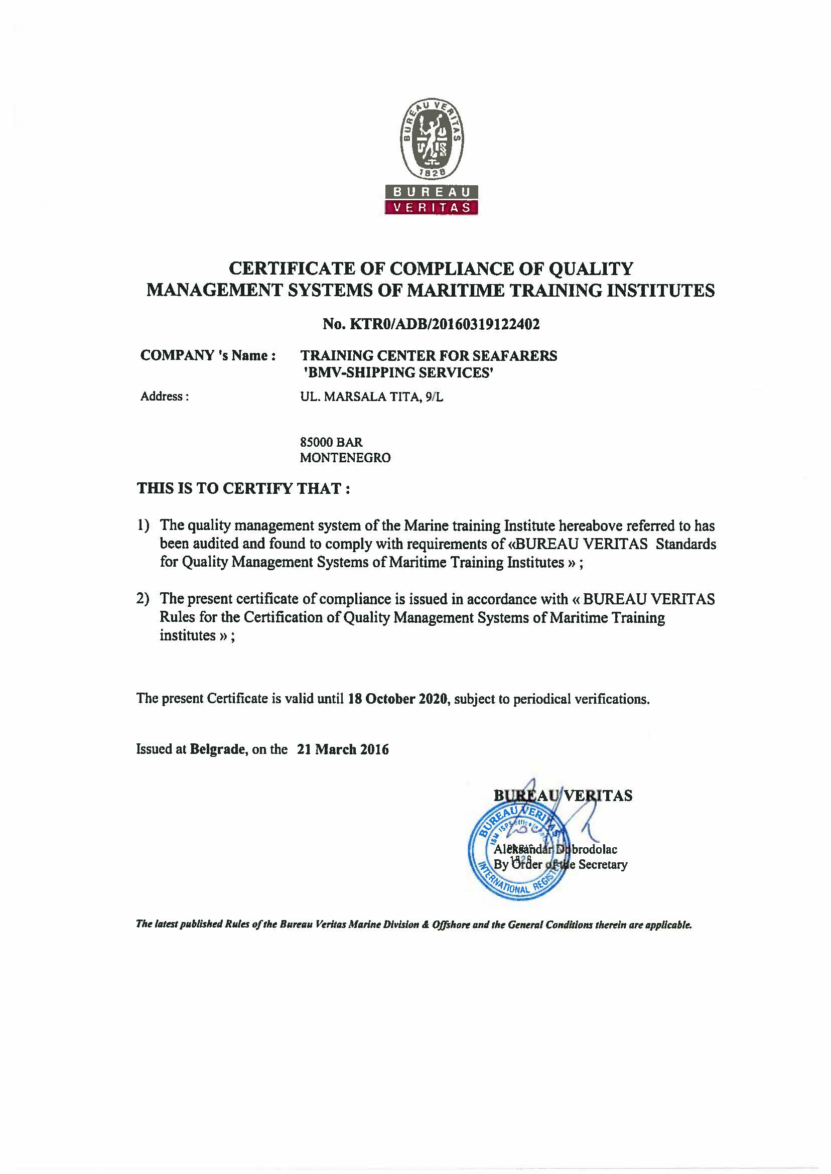 Sertifikati ispunjenosti uslova za držanje obuka: