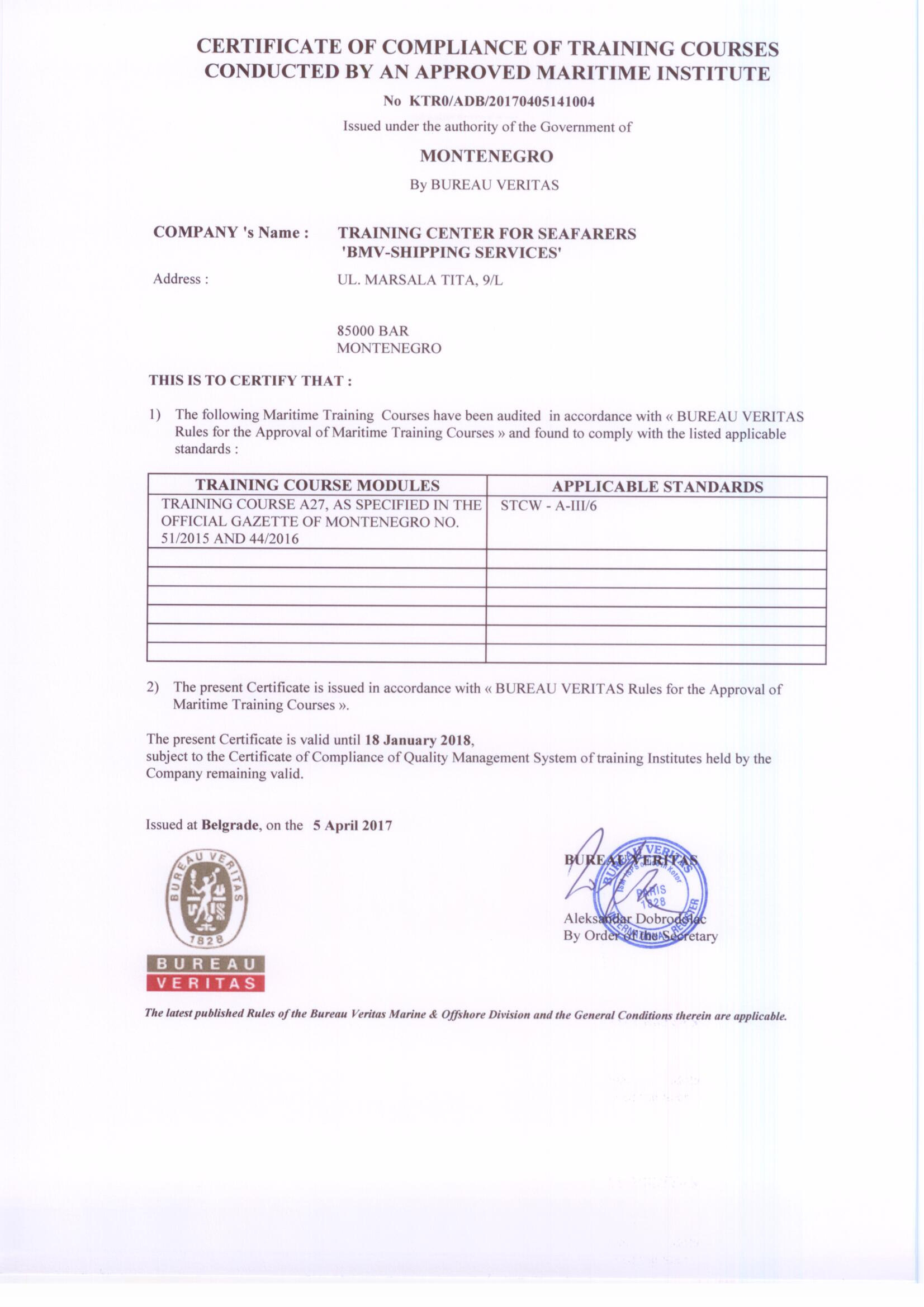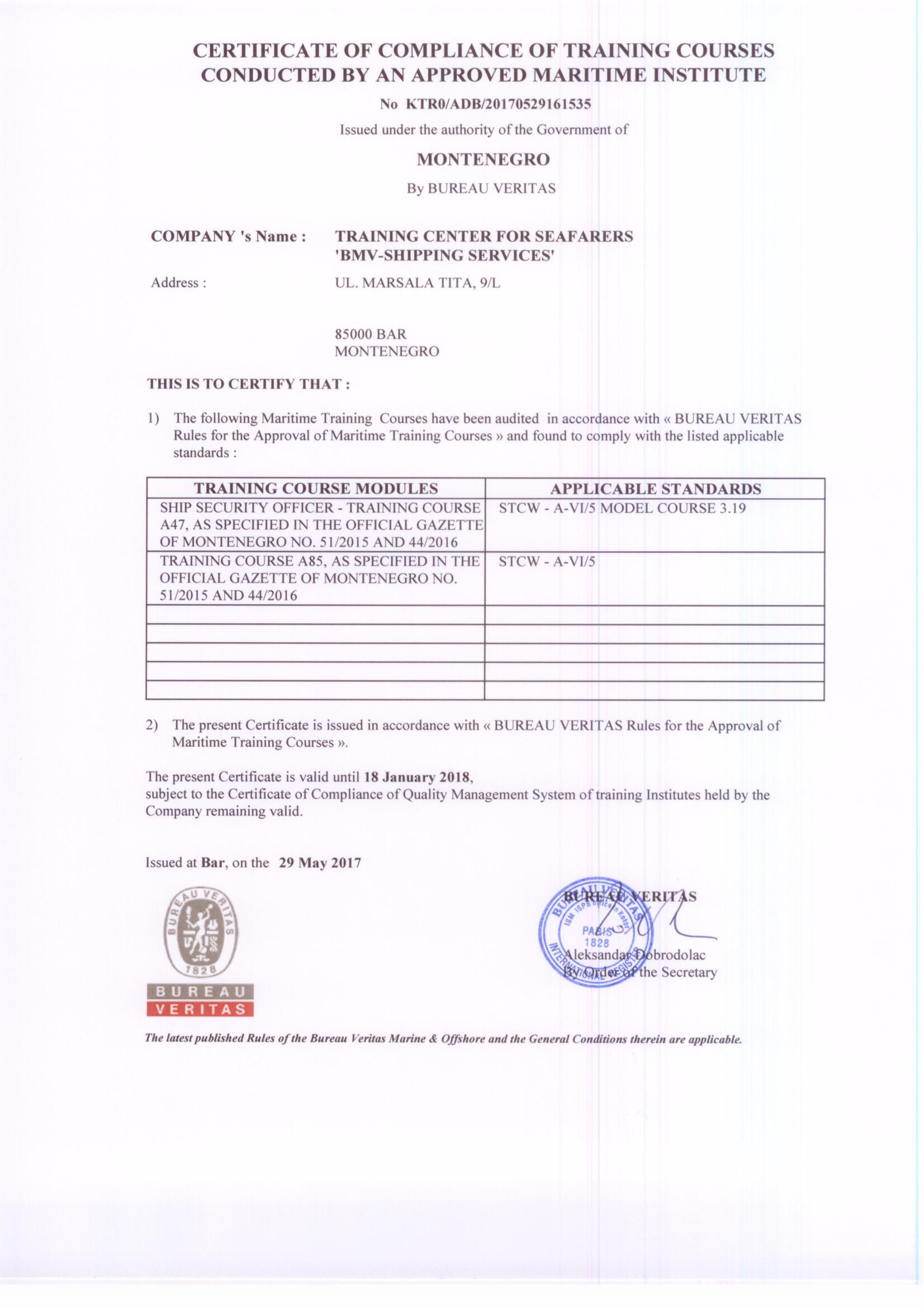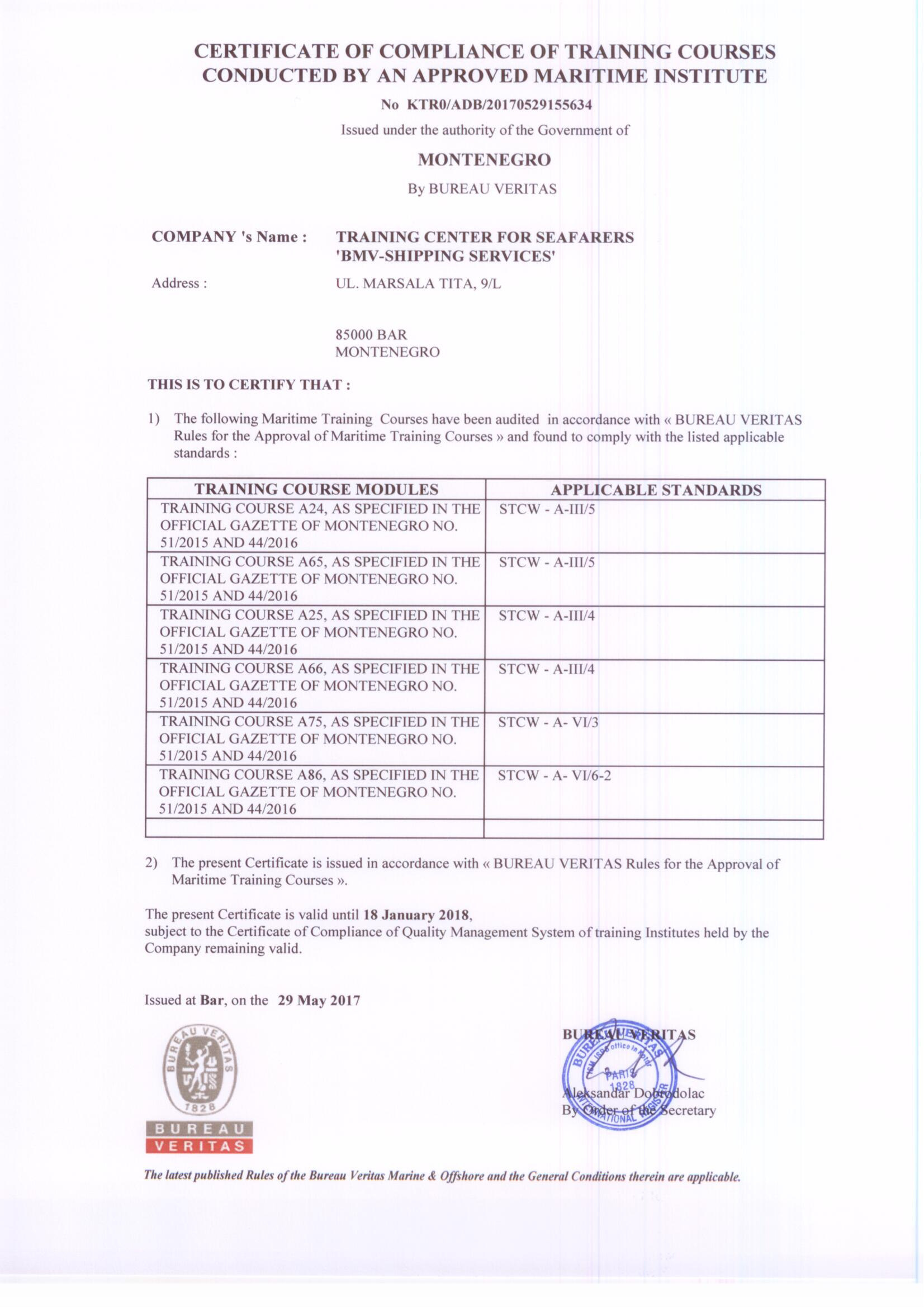 A86 - Obnavljanje ovlašćenja o osposobljenosti za pomorce kojima su dodijeljene bezbjednosne dužnosti