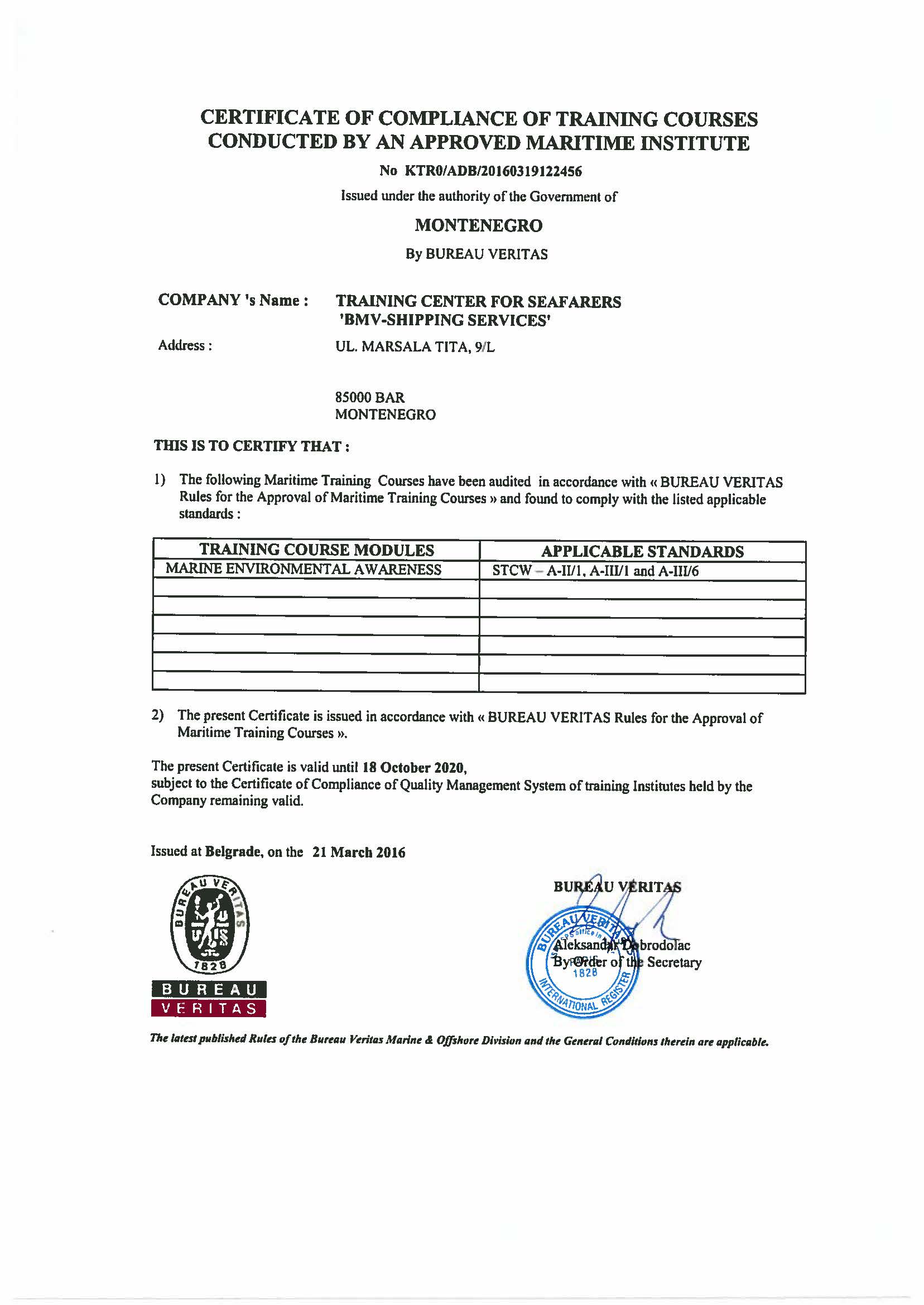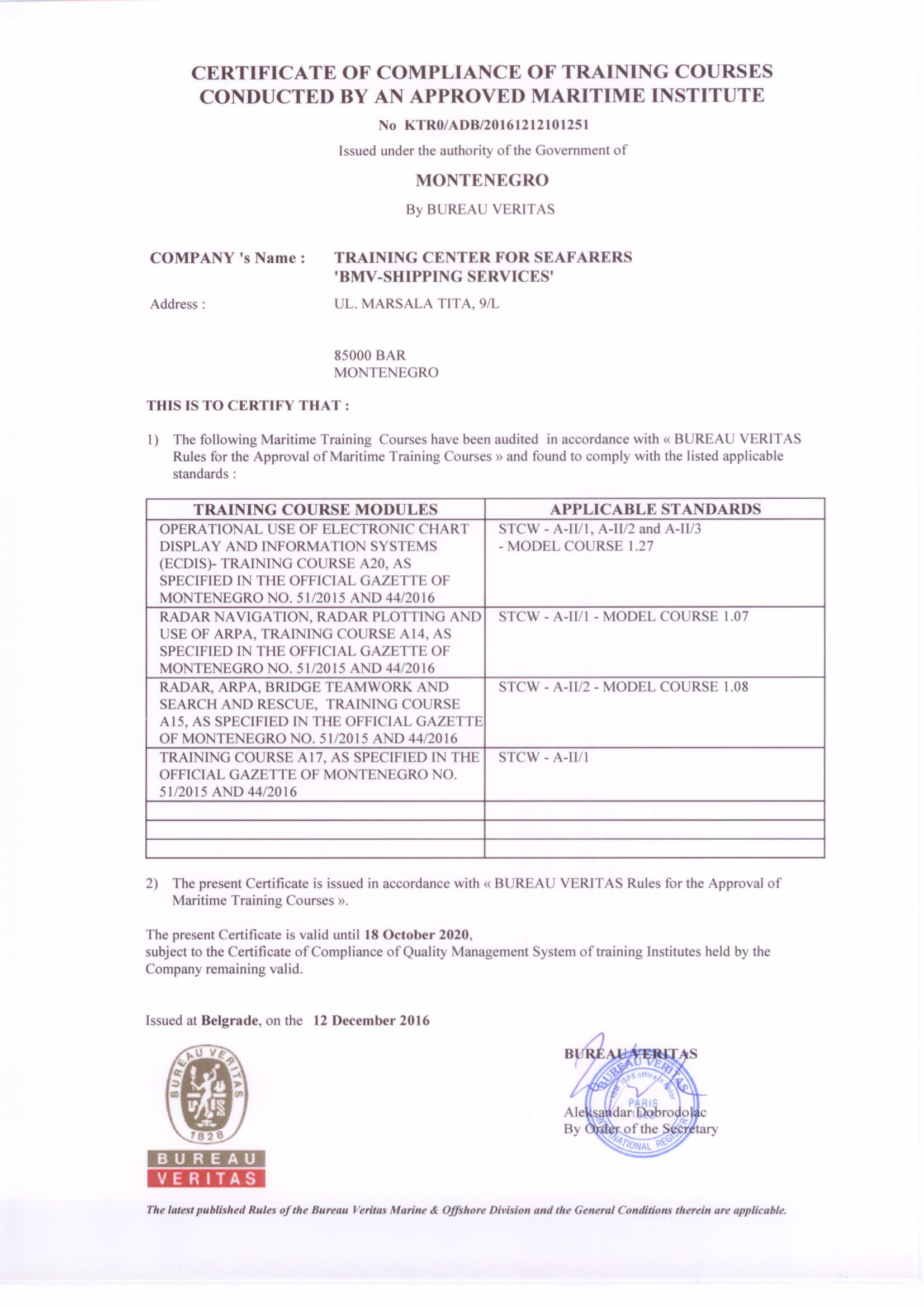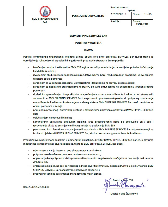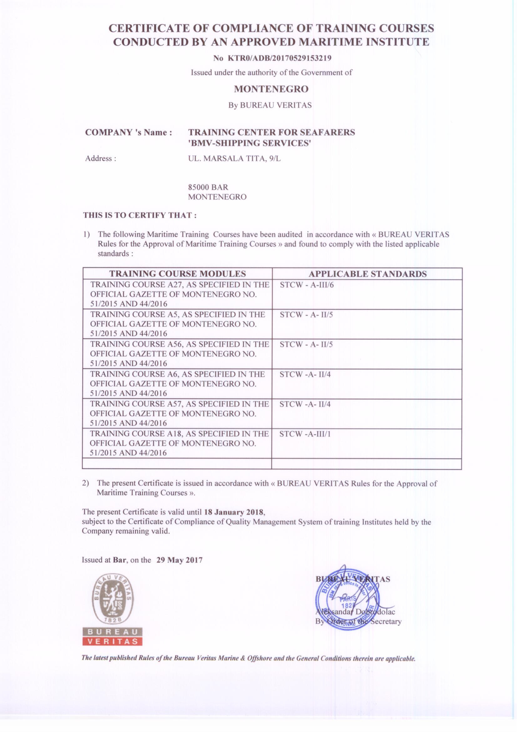 A86 - Obnavljanje ovlašćenja o osposobljenosti za pomorce kojima su dodijeljene bezbjednosne dužnosti