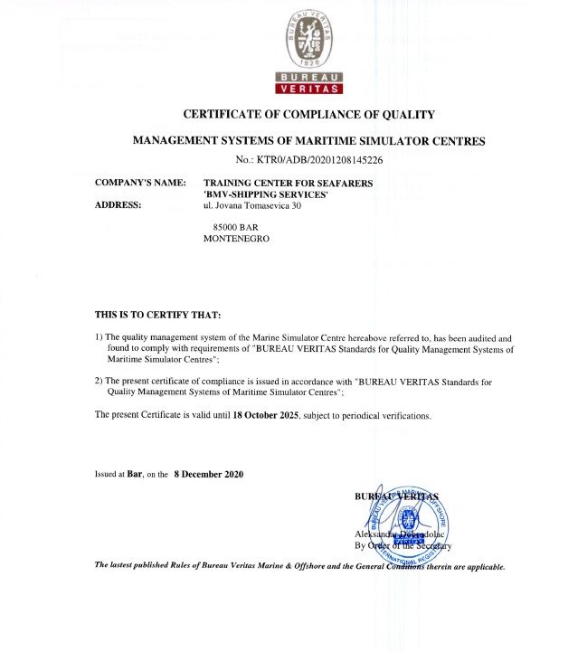 Sertifikat o ispunjenosti uslova za držanje obuka: